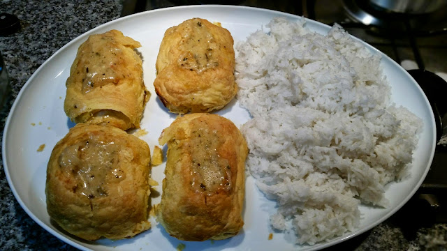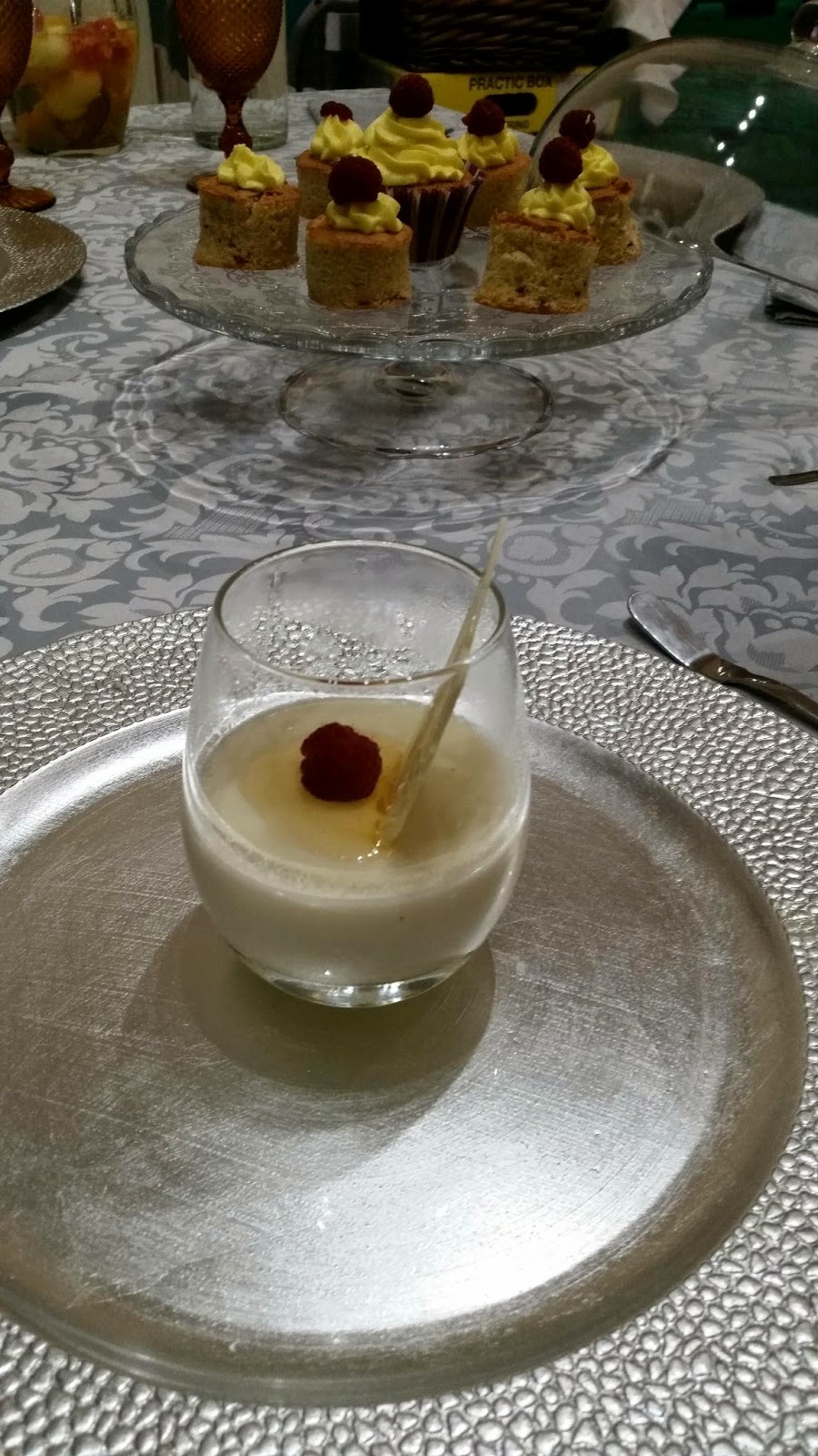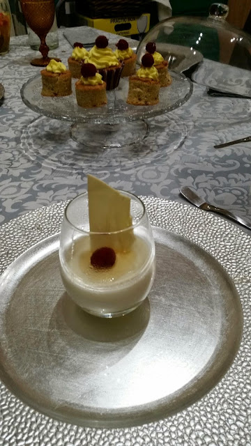Para o jantar de ontem tivemos pescada folhada, bolinho framboesa e panacotta de iogurte
